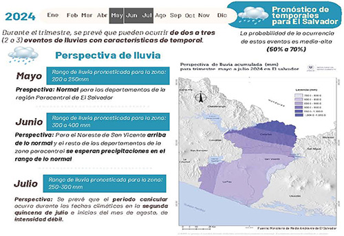 Durante el trimestre, se prevé que pueden ocurrir de dos a tres (2 a 3) eventos de lluvias con características de temporal.